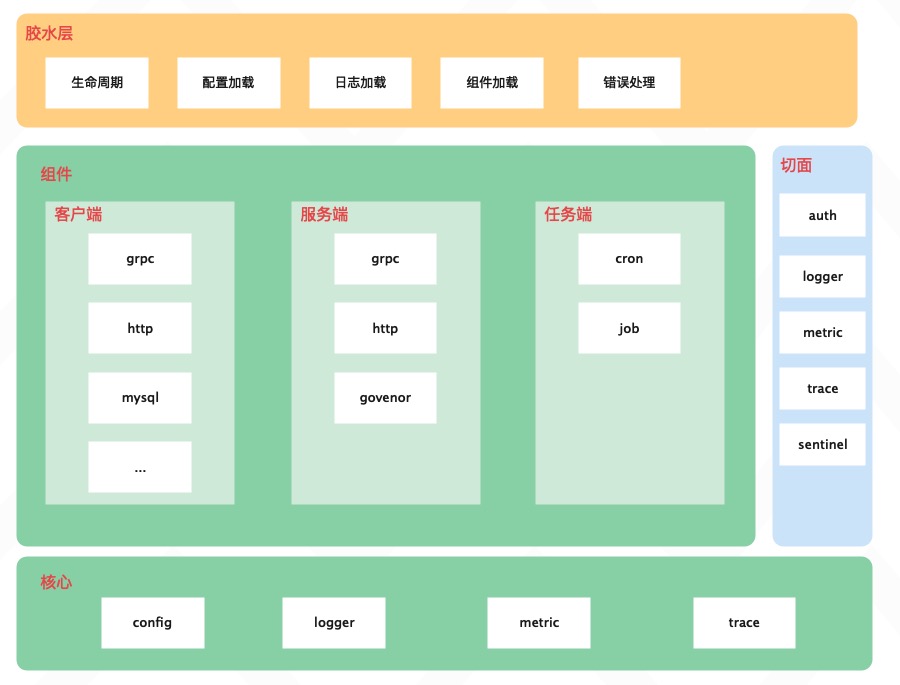 - 核心层提供配置、日志、监控和链路,是其他组件的基石